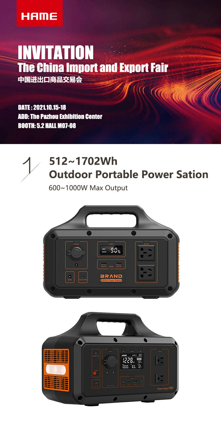 华体app官网登录入口-华体(中国)携户外储能电源和MagSafe移动电源出席第130届广交会线下展览,展台位于广交会展览馆A区5号馆5.2 M07~08,欢迎莅临。