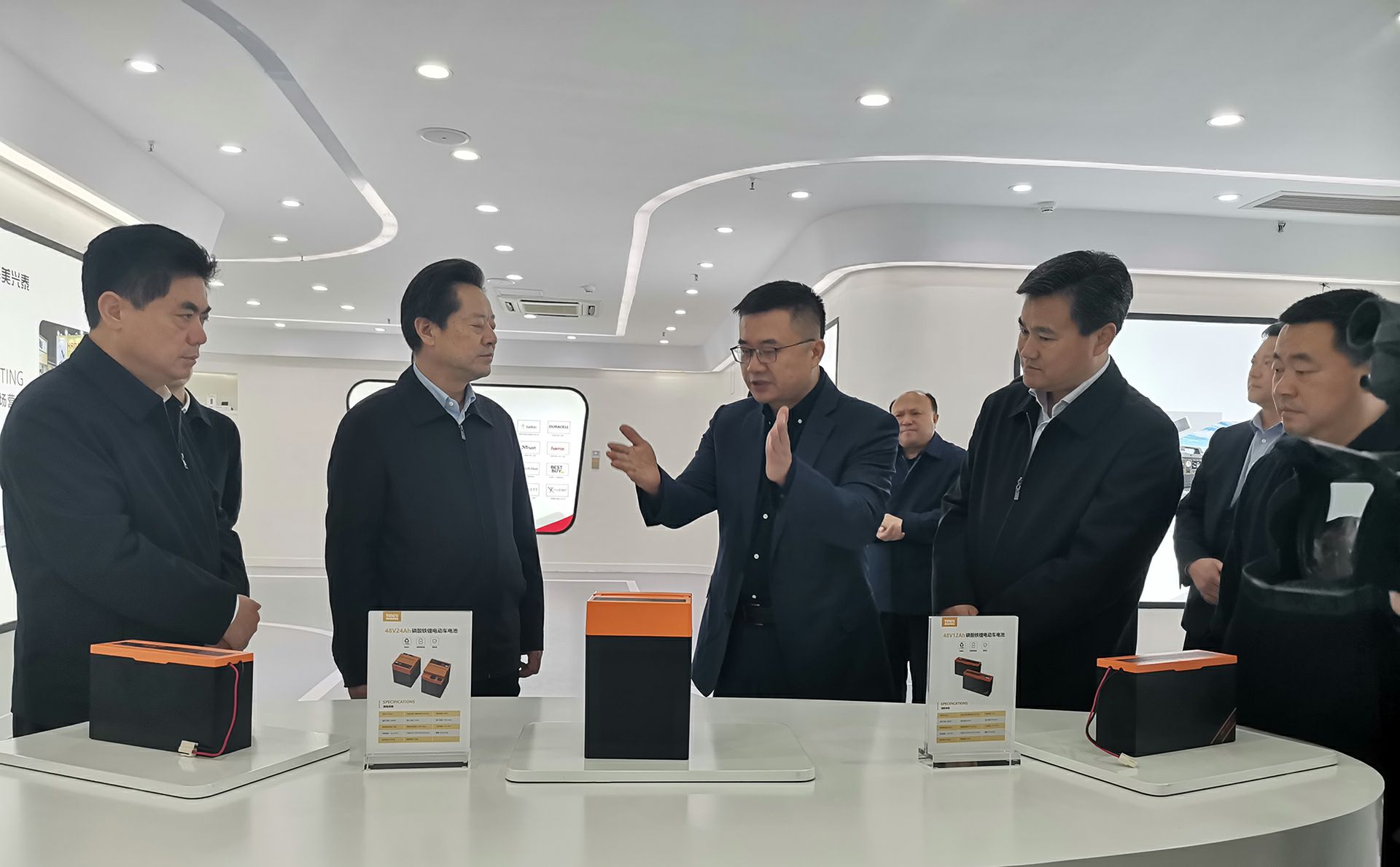 在董事长杨昌军的带领下,州委书记虢正贵一行参观了华体app官网登录入口-华体(中国)产品展示厅以及泰和美新能源电芯自动化生产线,详细了解了泰和美电动车电池产品市场规模及市场前景。